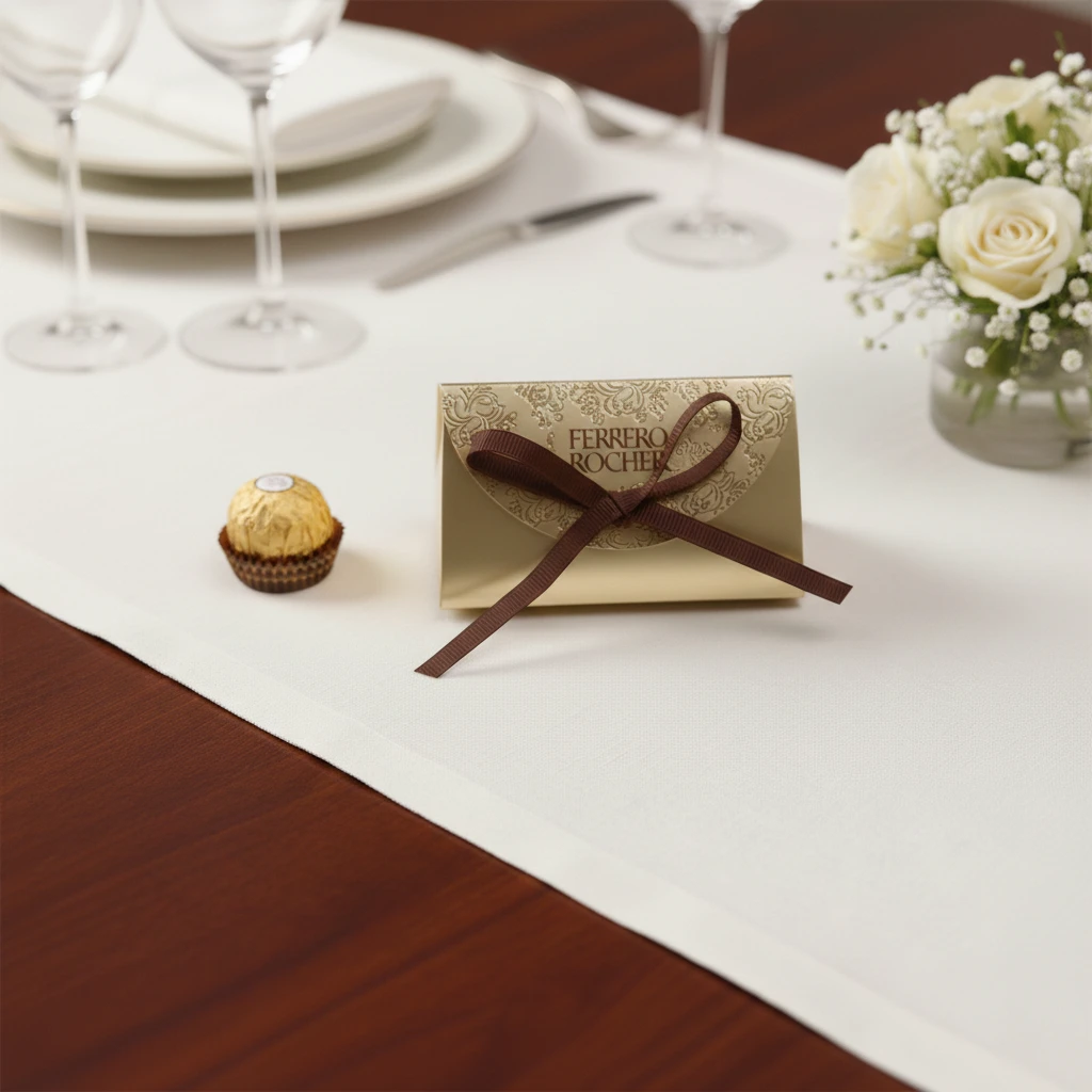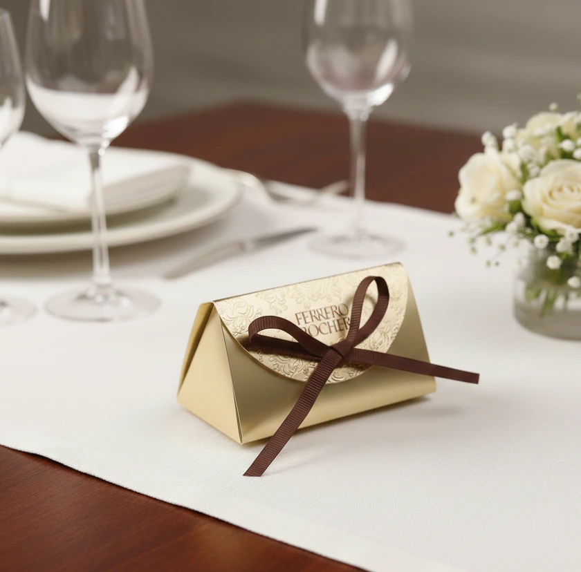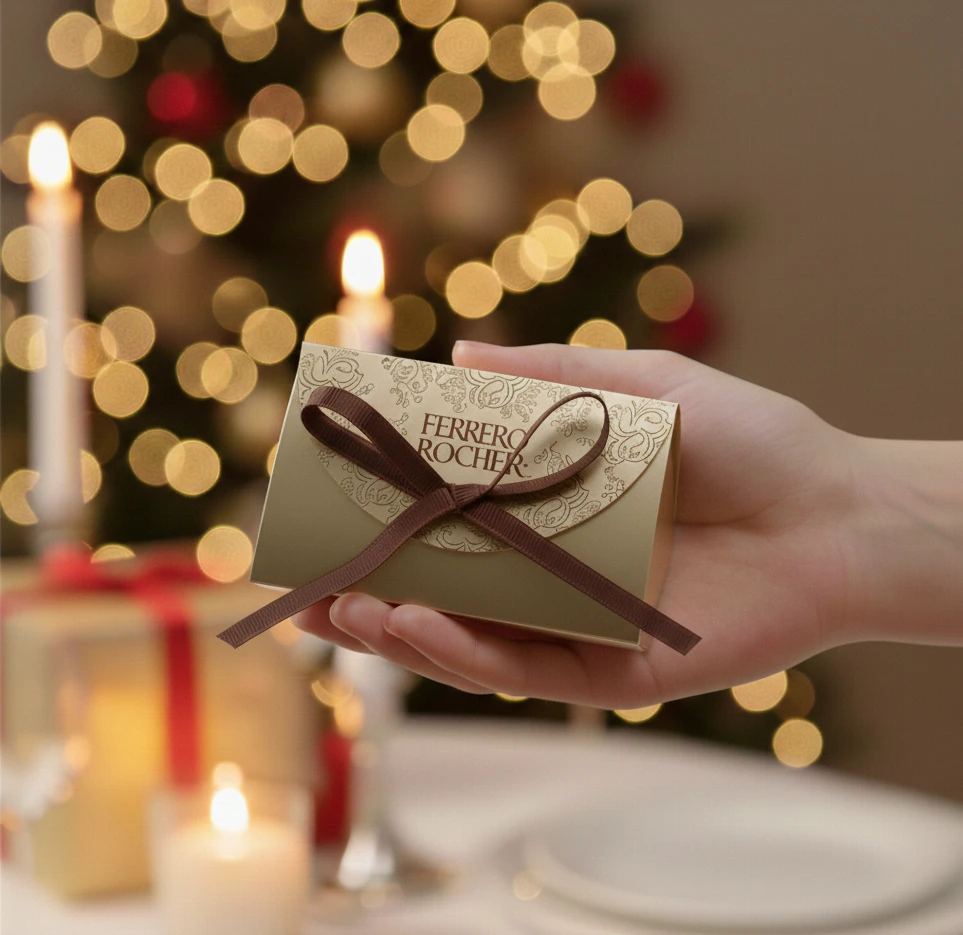 Petit coffret de deux bouchées Ferrero Rocher : le plaisir classique du praliné et de la noisette entière pour accompagner votre cadeau.