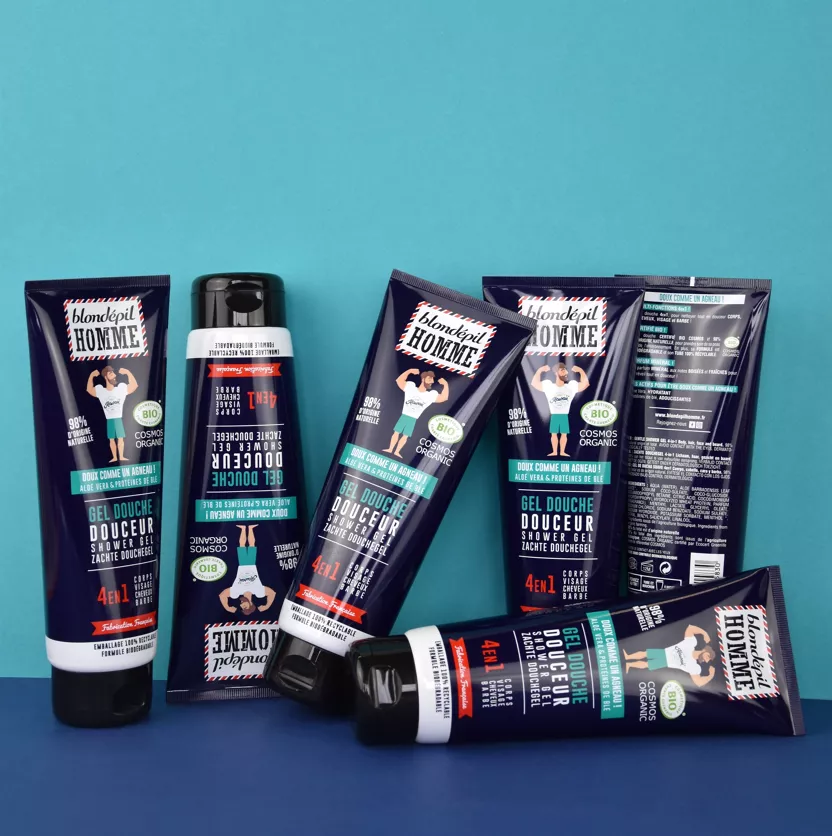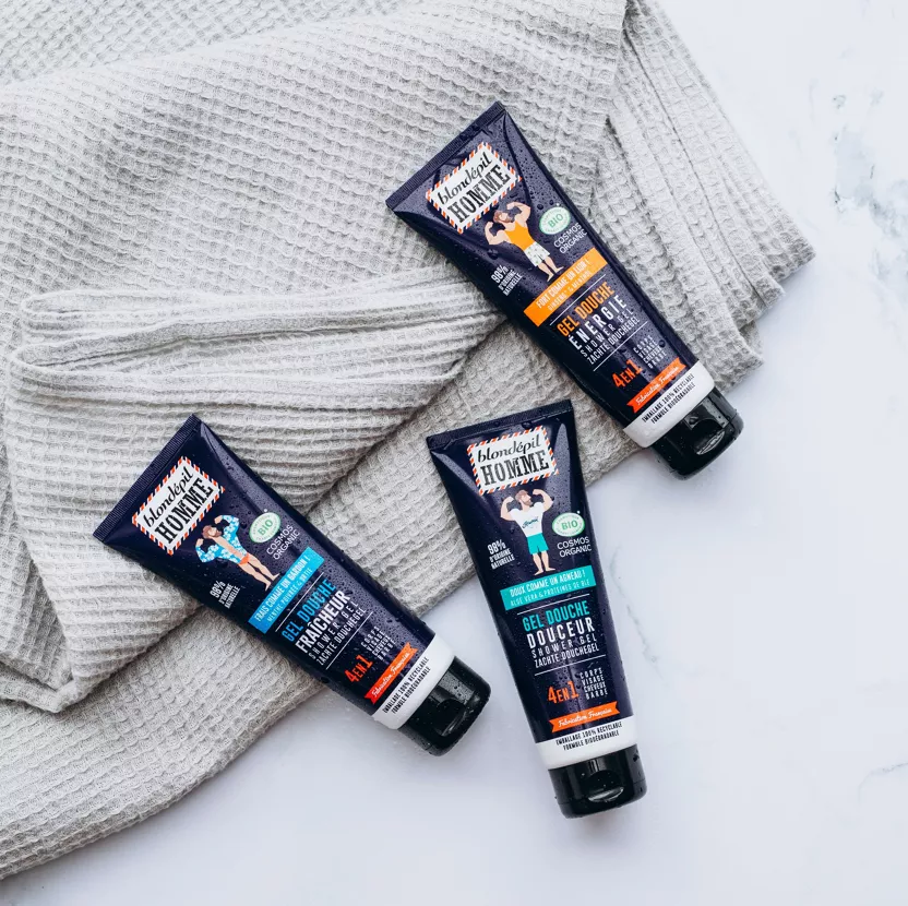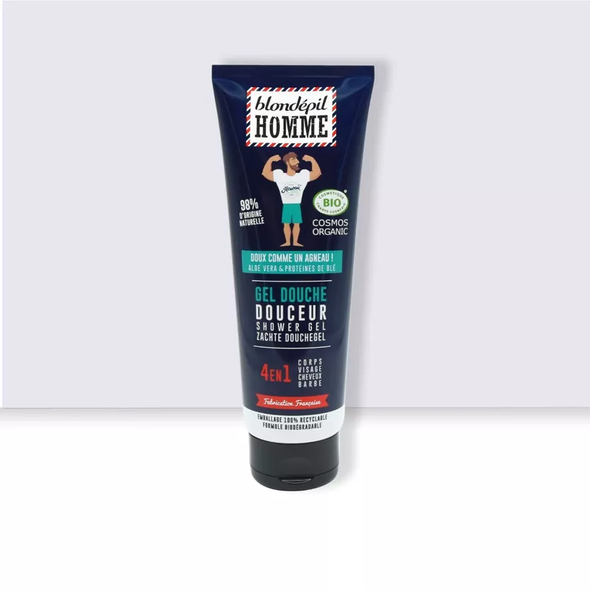 Gel douche 4 en 1, pour nettoyer tout en douceur CORPS, CHEVEUX, VISAGE et BARBE !